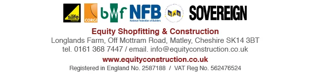 Using the latest building and shopfitting technology and highly trained and experienced personnel, Equity Group have some high profile clients on our project list and in our portfolio, including, Manto, Kiss Radio, Herzt Rentals, The Hacienda, Saville Gordon Estates, Communisis Security Products, Micro Direct, Jarvis, New Order (yes the band!) and many more.
